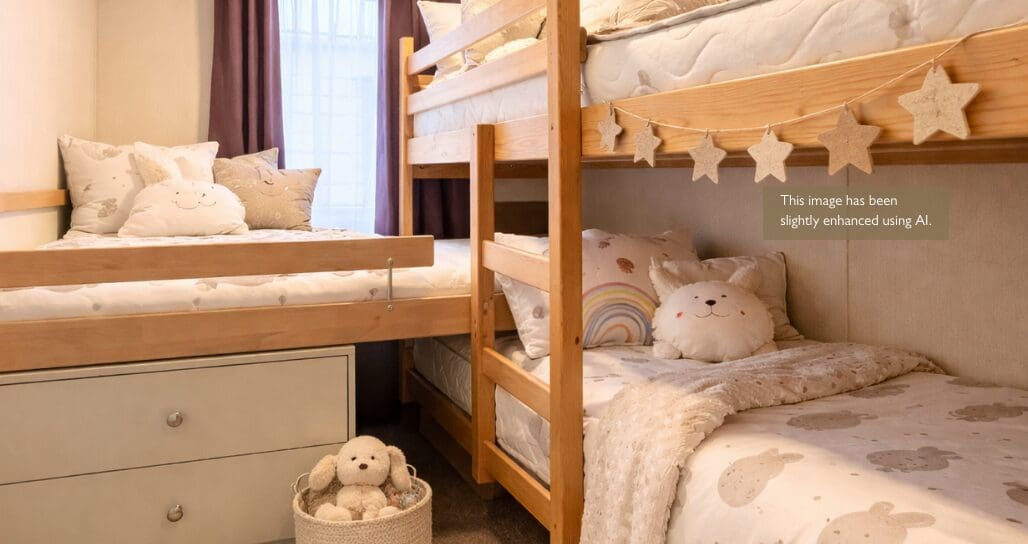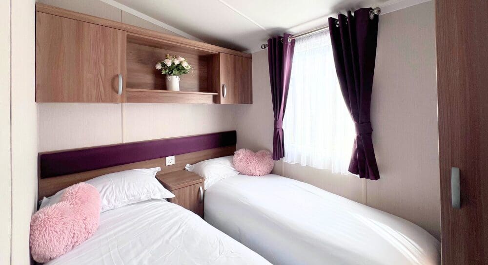 The two twin bedrooms are both well-proportioned and thoughtfully designed, providing comfortable sleeping spaces with ample storage for holiday essential, perfect for children, guests, or extended family.