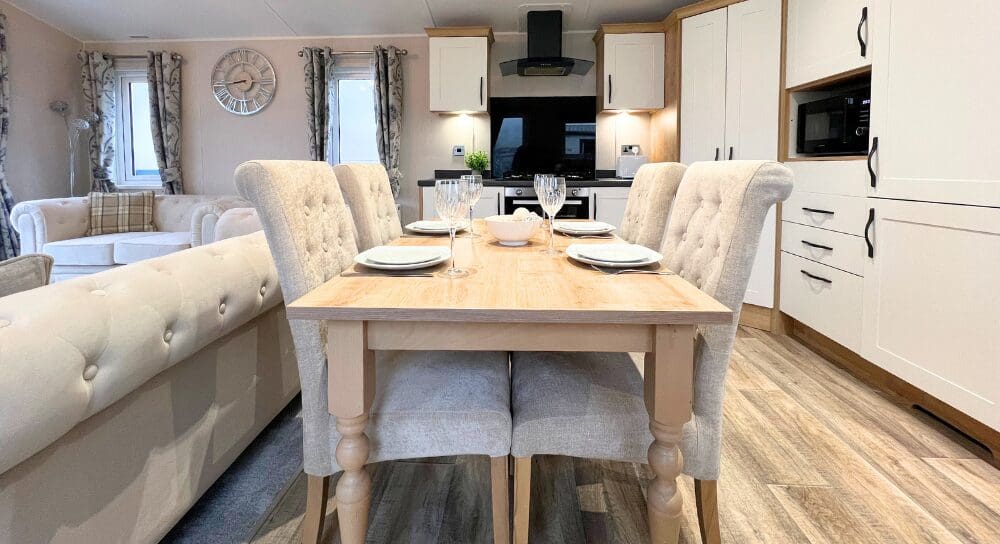 The Willerby Dorchester sleeps up to six people, offering two beautifully designed bedrooms that feel calm, spacious, and luxurious.