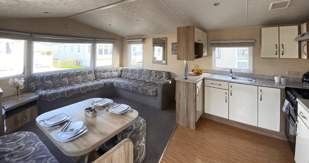 This static caravans open plan living dining area is everything you would need in a self-catering holiday set on the beautiful East Yorkshire Coast.